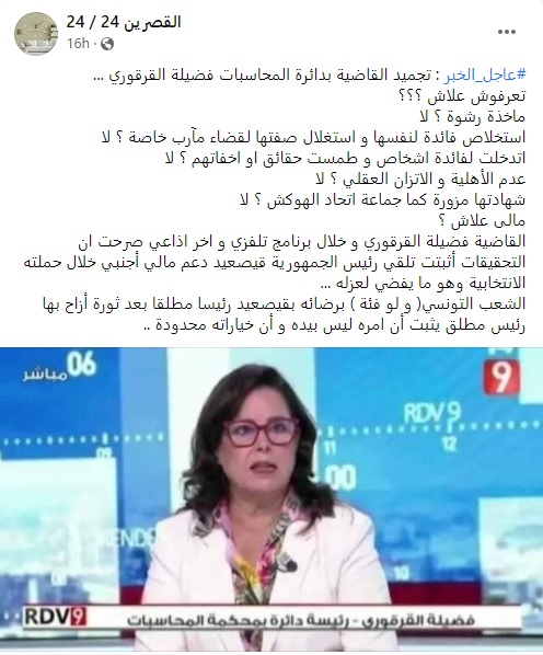 La page Facebook القصرين 24/24 a publié, le 28 octobre 2021, une information selon laquelle la